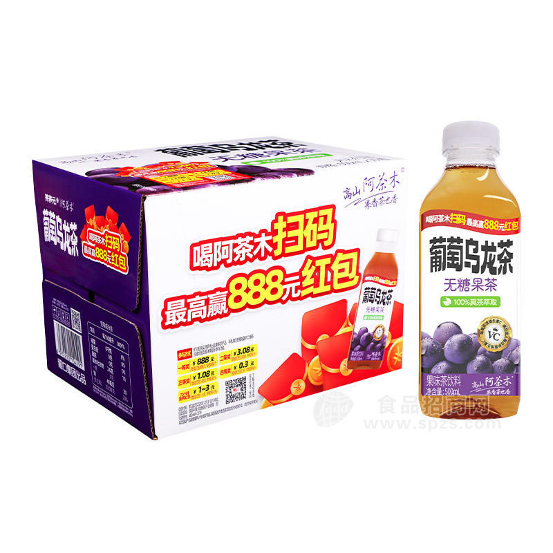 阿茶木葡萄乌龙茶无糖果茶果味茶饮料500ml