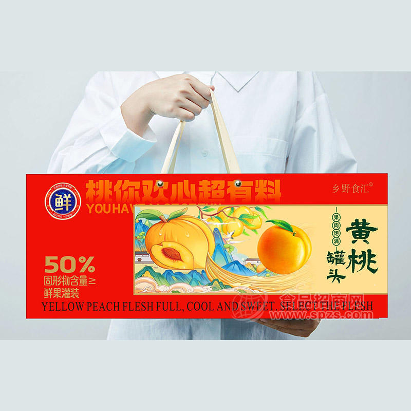 乡野食汇黄桃罐头休闲食品500gx4瓶招商