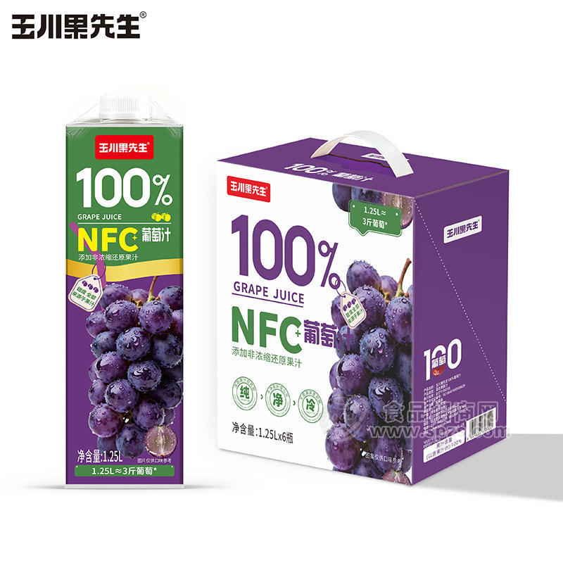 玉川果先生NFC100%葡萄汁果汁饮料1.25LX6瓶