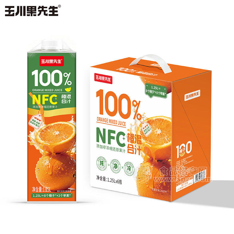 玉川果先生NFC100%橙混合汁果汁饮料1.25LX6瓶