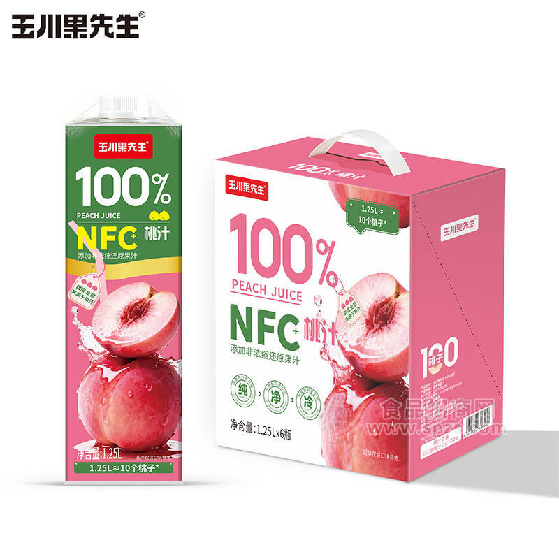 玉川果先生100%NFC桃汁果汁饮料1.25LX6瓶