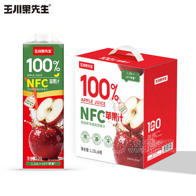 玉川果先生NFC100%苹果汁饮料1.25LX6瓶