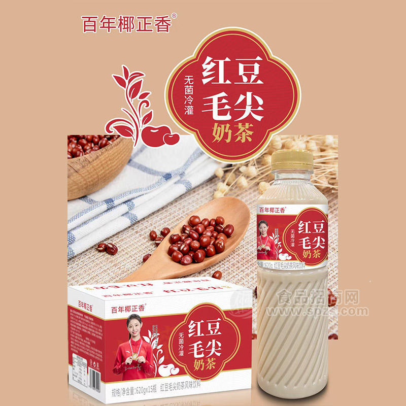 百年椰正香无菌冷罐装红豆毛尖奶茶饮料620gx15瓶招商