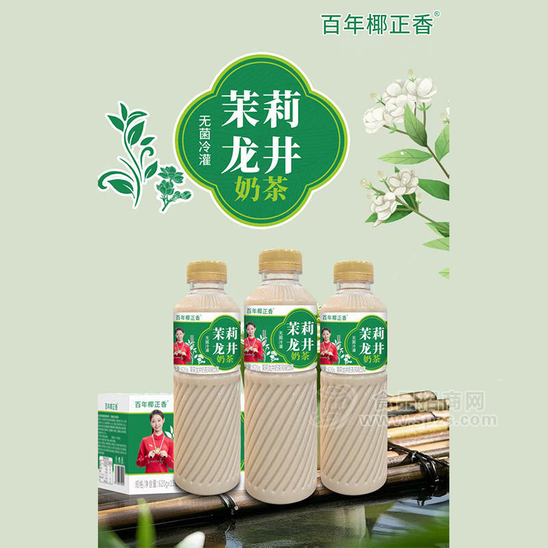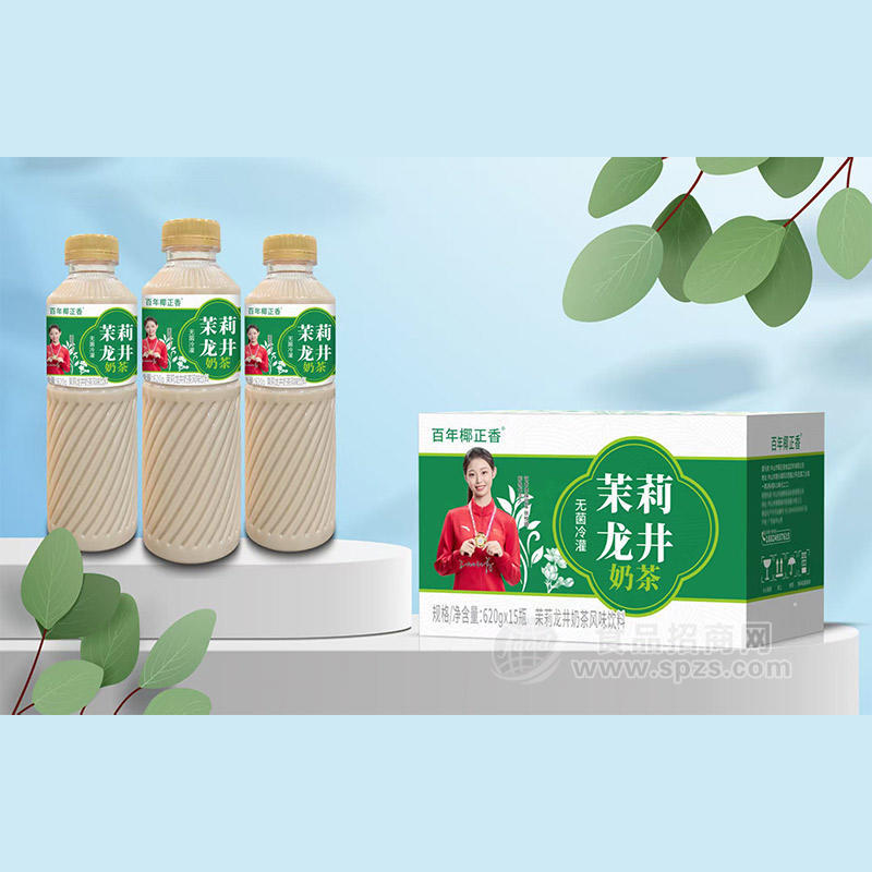 百年椰正香无菌冷罐茉莉龙井奶茶饮料620gx15瓶招商