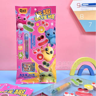 萌孩子画笔形糖果+橡皮糖+跳跳糖休闲零食厂家招商46g