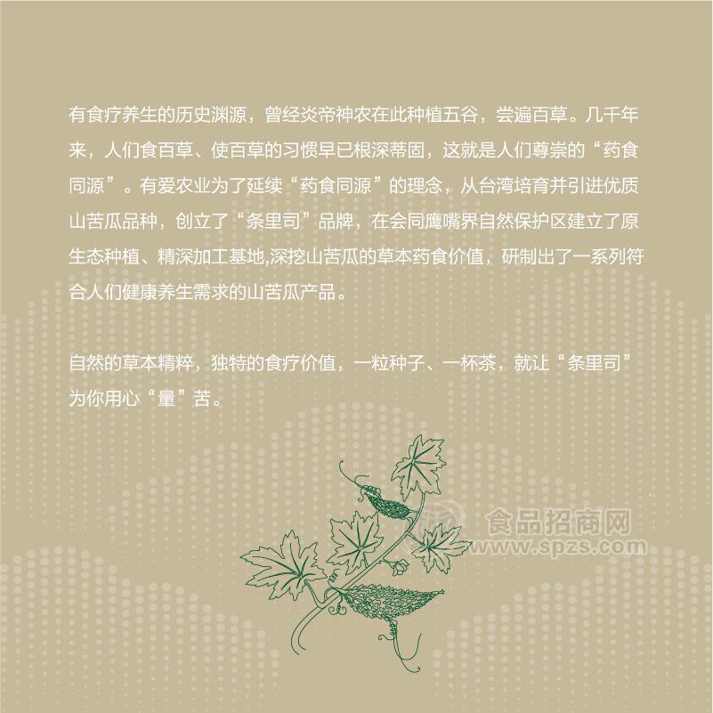 条里司山苦瓜茶 1*15包/盒 新品上市全国招商招代理(上市时间:2020年5月份)。