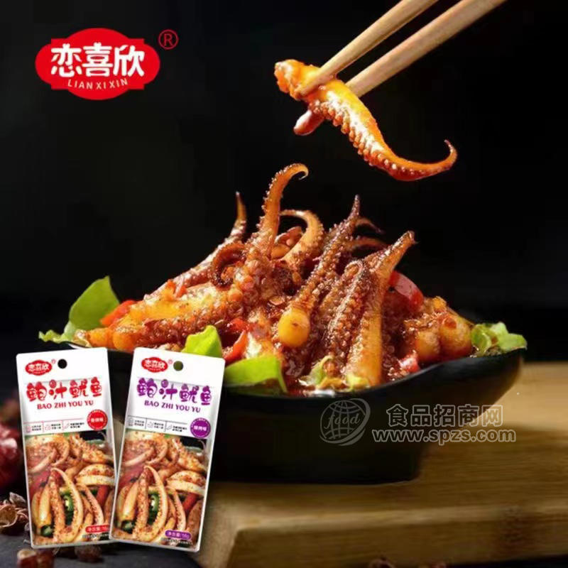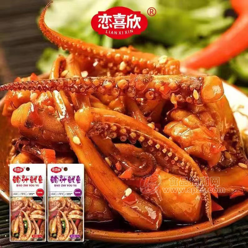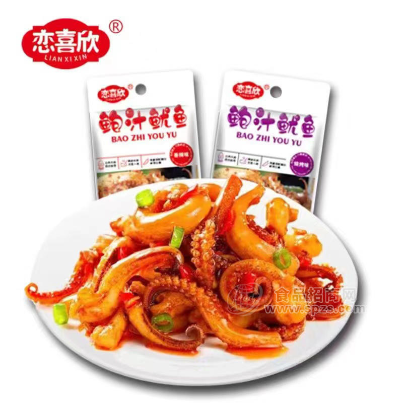 1、恋喜欣香辣味烧烤味鲍汁鱿鱼休闲食品招商16g×20包×20盒经销商必须有经营销售能力。