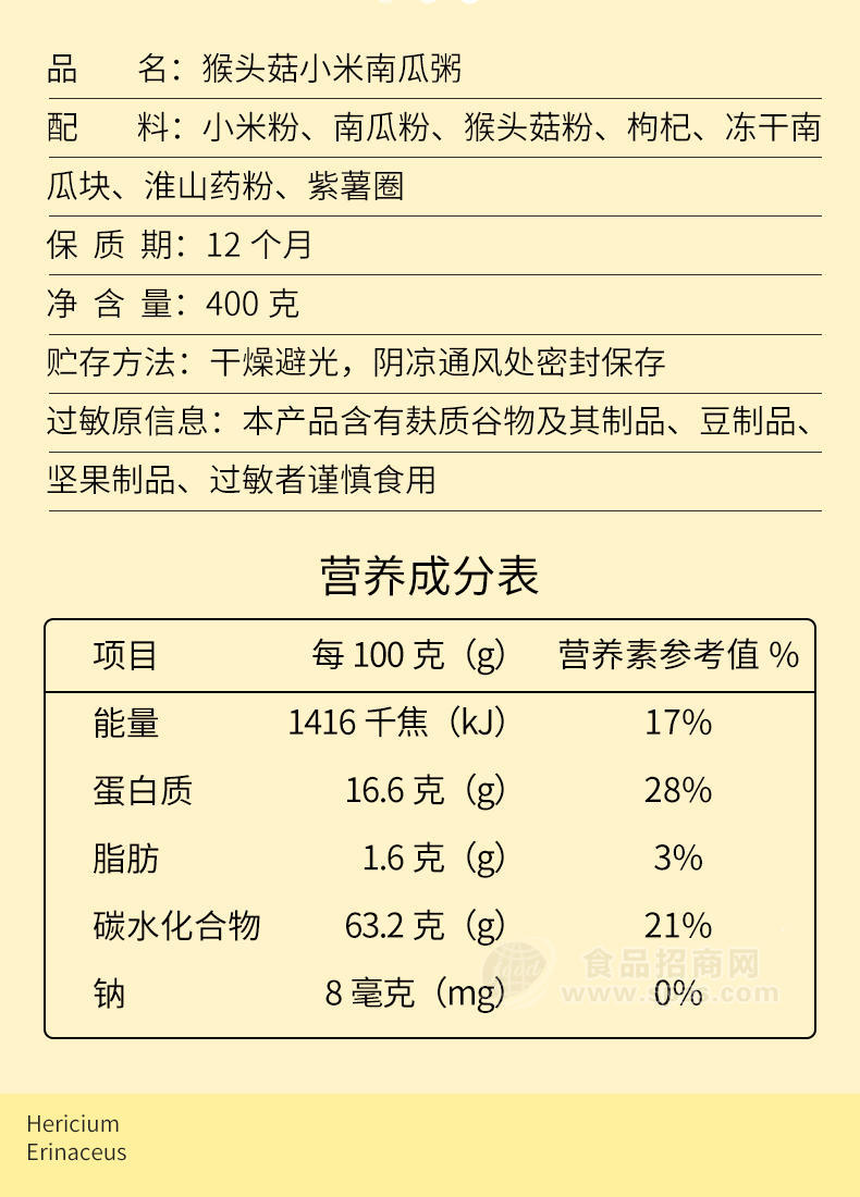 熙昕猴头菇小米南瓜粥早餐代餐粉冲泡即食营养早餐粥批发