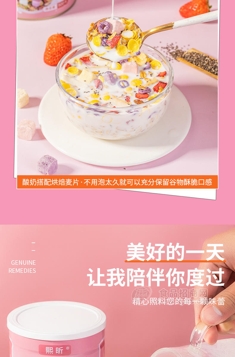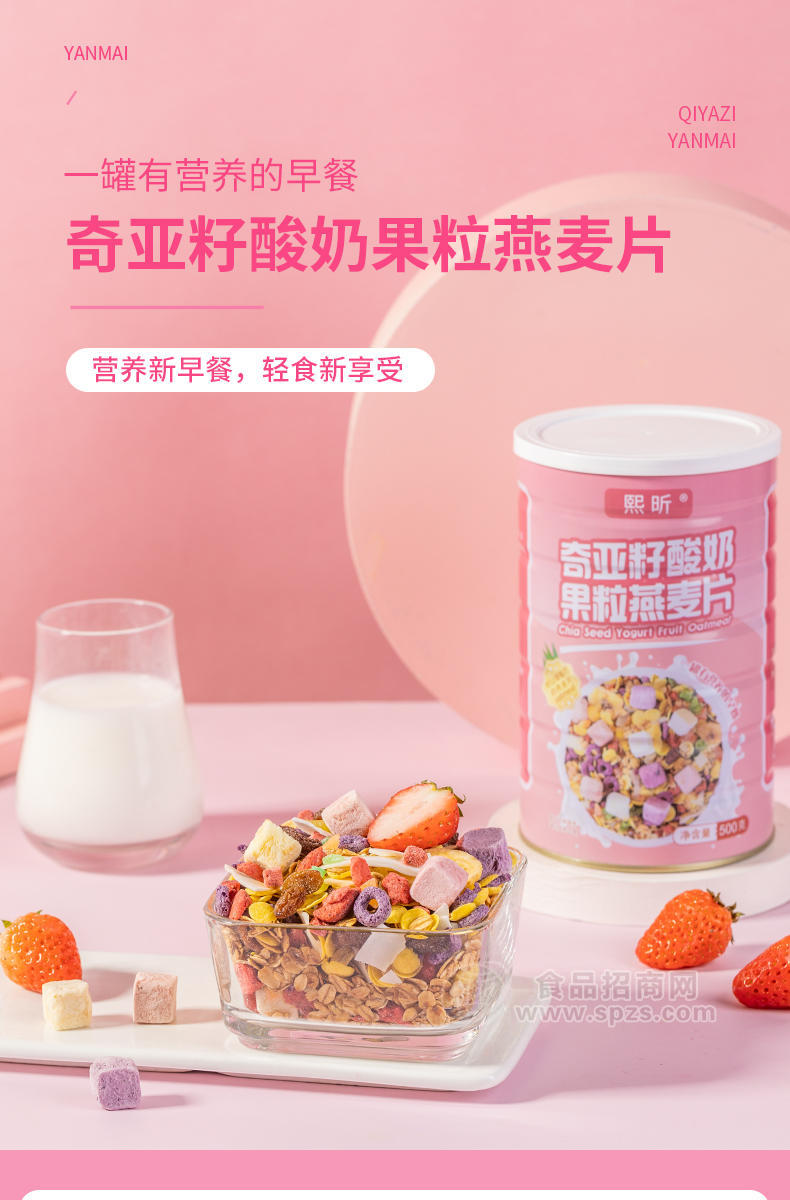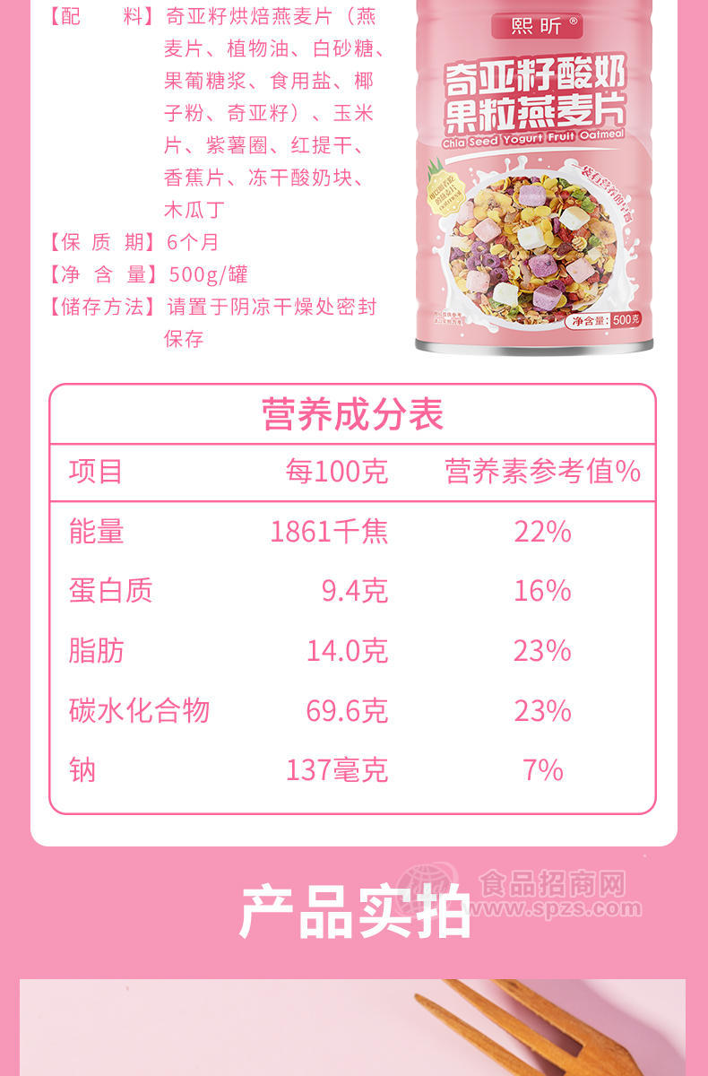 熙昕奇亚籽酸奶果粒燕麦片500g是由山东食裕轩生物科技有限公司生产,是麦片知名品牌,山东食裕轩生物科技有限公司采用国内外先进的工艺加工技术,并经专家精心调制生产;熙昕奇亚籽酸奶果粒燕麦片500g是居家养生、礼赠佳品的有效选择。现面向全国各地诚招代理商。