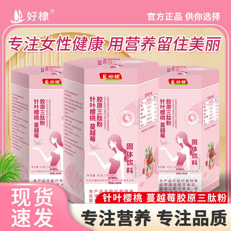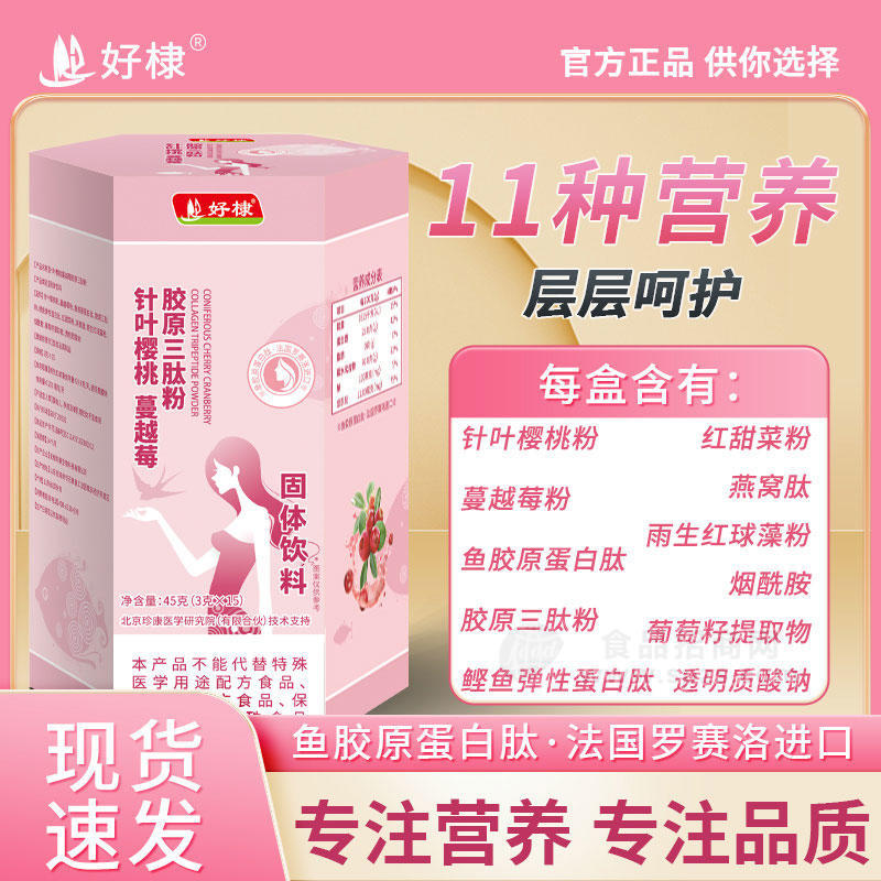 好棣胶原三肽粉针叶樱桃蔓越莓固体饮料桶装招商45克是由好棣(山东)生物科技有限公司生产,是固体饮料知名品牌,好棣(山东)生物科技有限公司采用国内外先进的工艺加工技术,并经专家精心调制生产;好棣胶原三肽粉针叶樱桃蔓越莓固体饮料桶装招商45克是居家养生、礼赠佳品的有效选择。现面向全国各地诚招代理商。