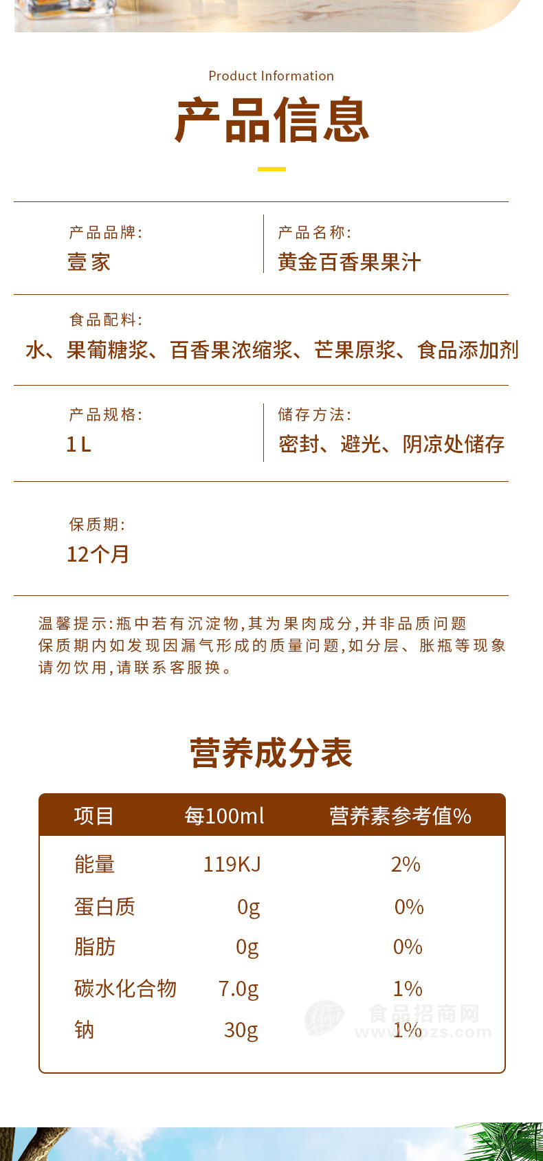 1、壹家百香果果汁饮料1LX6瓶经销商必须有经营销售能力。