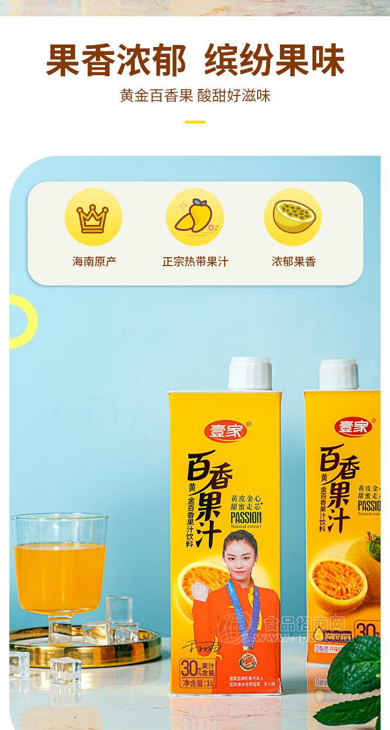 壹家百香果果汁饮料1LX6瓶是由海南壹家食品有限公司生产,是果汁饮料知名品牌,海南壹家食品有限公司采用国内外先进的工艺加工技术,并经专家精心调制生产;壹家百香果果汁饮料1LX6瓶营养丰富适合中国人体质和饮食习惯,现面向全国各地诚招代理商。