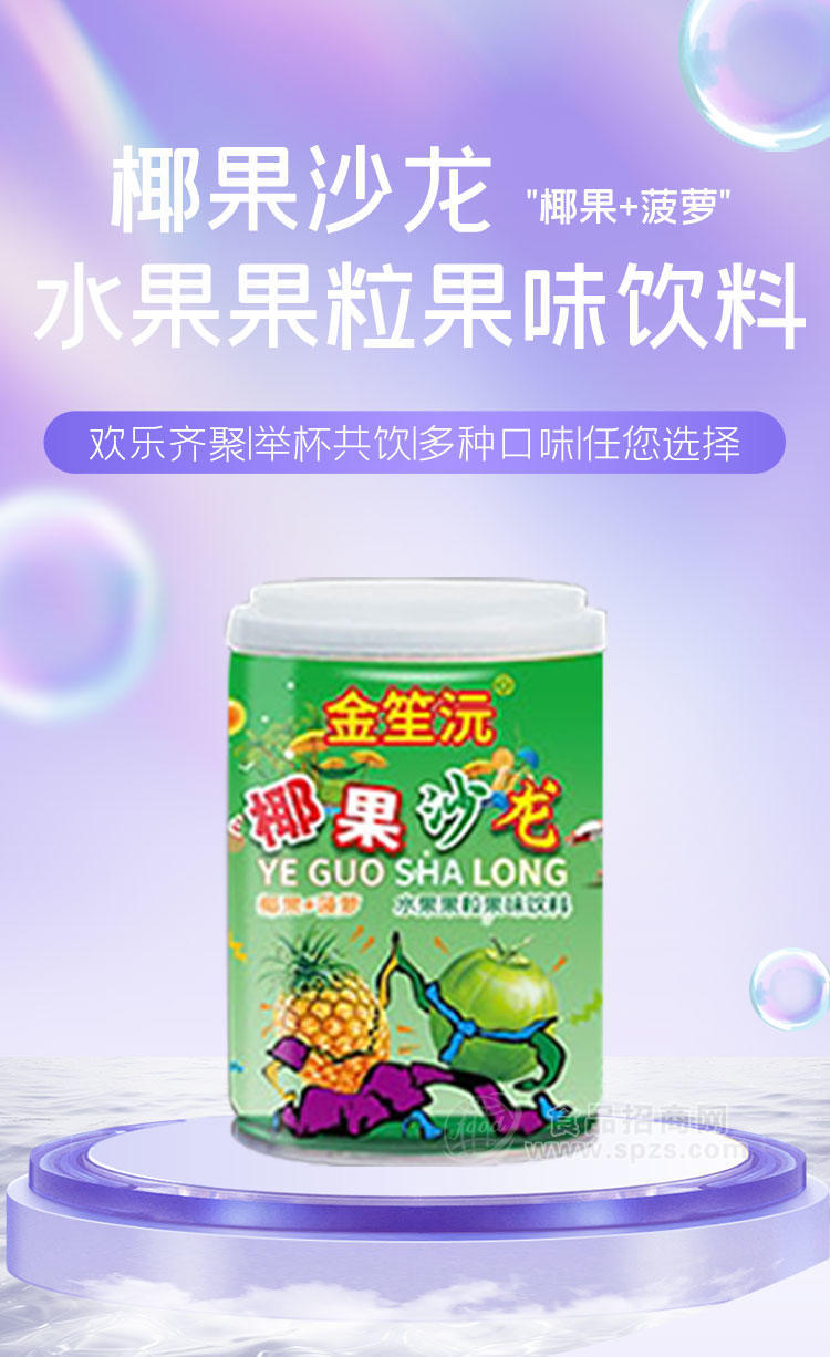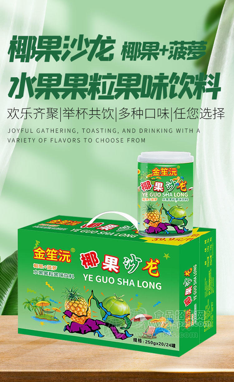 金笙沅椰果沙龙水果果粒果味饮料椰果+菠萝250gX24罐是由佛山市润捷饮料有限公司生产,是风味饮料知名品牌,佛山市润捷饮料有限公司采用国内外先进的工艺加工技术,并经专家精心调制生产;金笙沅椰果沙龙水果果粒果味饮料椰果+菠萝250gX24罐营养丰富适合中国人体质和饮食习惯,现面向全国各地诚招代理商。