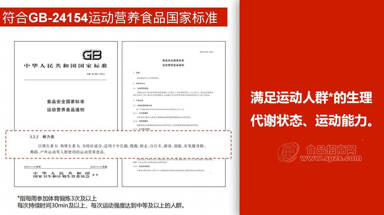 满足运动人群能量补充、体能充沛、快速恢复体能的耐力提升需要