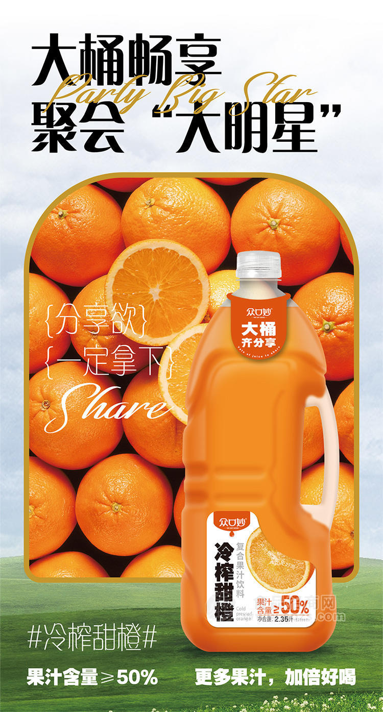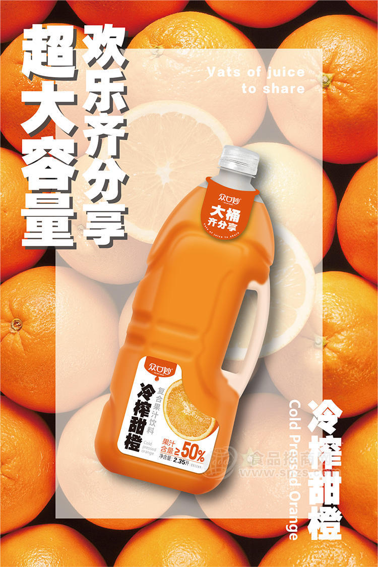 1、众口妙冷榨甜橙复合果汁饮料箱装招商2.35L×6瓶经销商必须有经营销售能力。