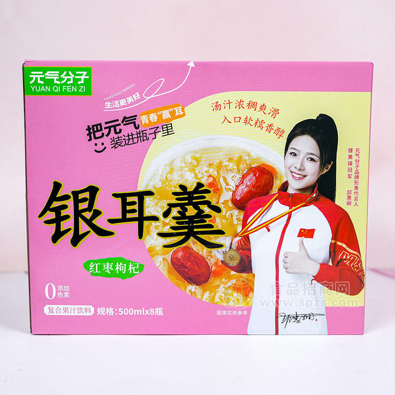 元气分子 红枣枸杞银耳羹复合果汁饮料箱装招商500ml×8瓶为杭州元气分子食品科技有限公司旗下品牌,元气分子 红枣枸杞银耳羹复合果汁饮料箱装招商500ml×8瓶是一款果汁饮料,是深得消费者和代理商喜爱和信赖的饮料类品牌,它的净含量为500ml×8瓶,采用箱装包装,非常方便使用和保存,价格实惠,可在常温下进行保存,冷藏情况下口感更佳。元气分子 红枣枸杞银耳羹复合果汁饮料箱装招商500ml×8瓶口感出众,有箱装以及礼盒装,餐饮商超渠道全覆盖,市场热销。