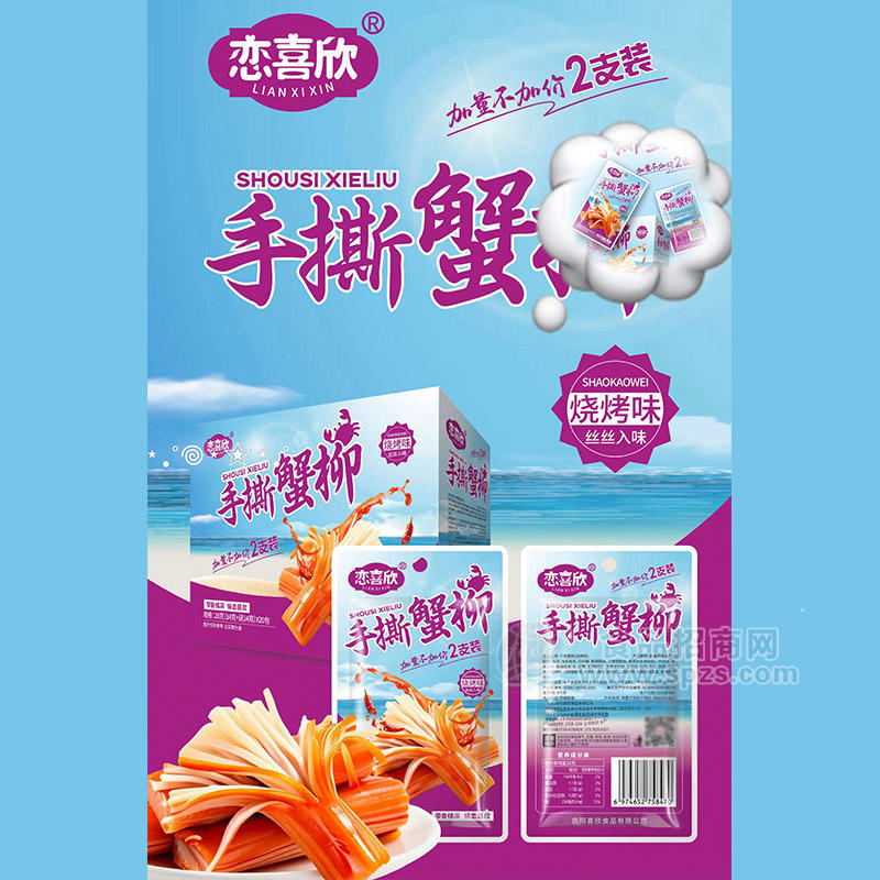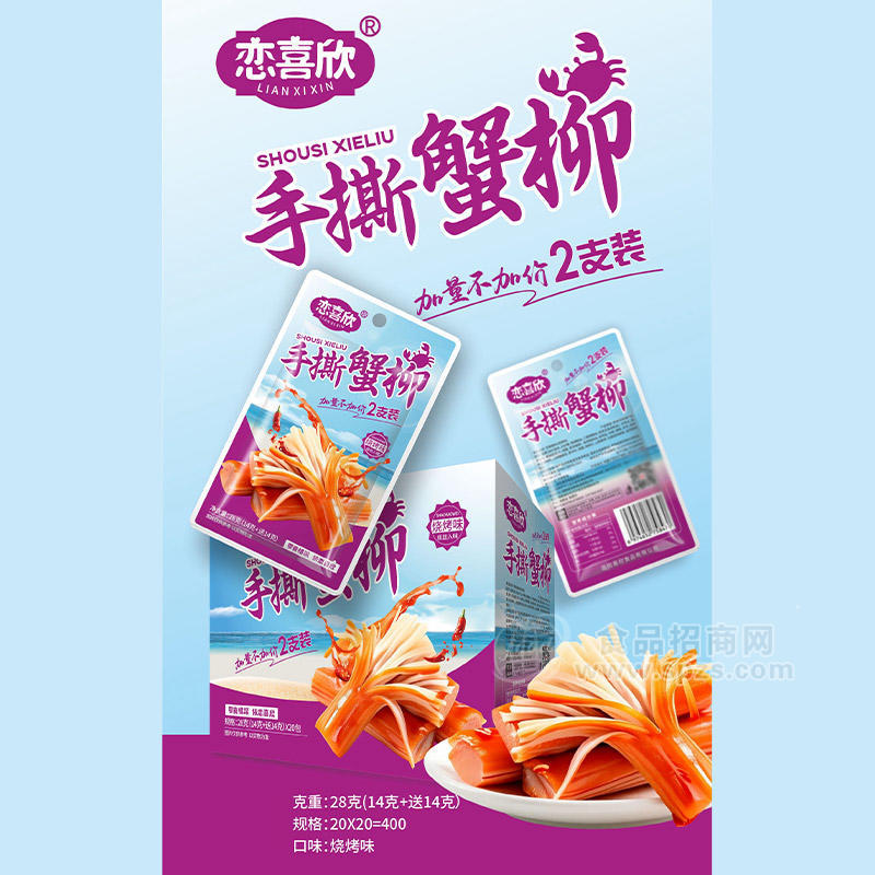 1、恋喜欣手撕蟹柳烧烤味休闲零食经销商必须有经营销售能力。