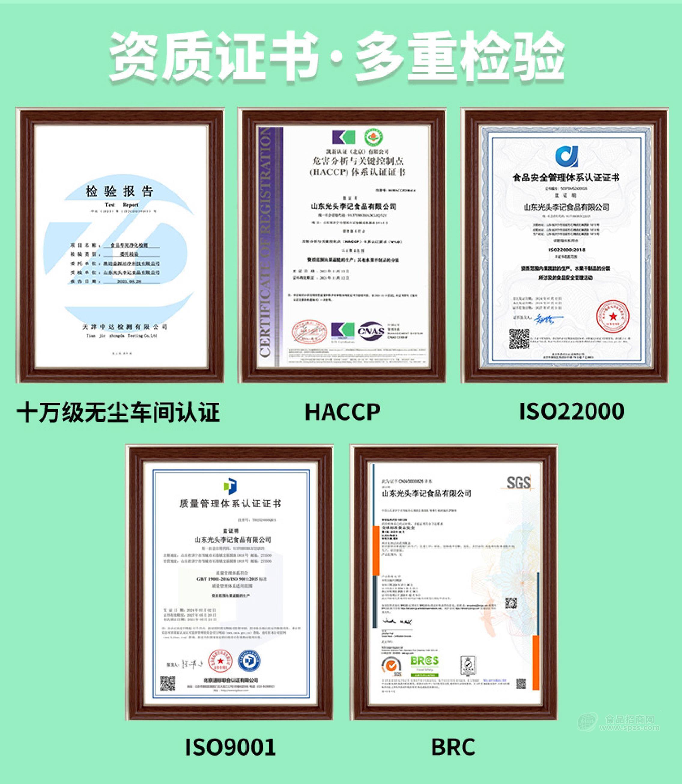 山东光头李记食品有限公司,专业从事于休闲零食的研发与销售。公司自有果蔬种植基地,占地面积8000余亩,总投资3亿元,从源头把控原料品质。2.5万平方十万级无尘车间,gmp专业认证。始终以食品安全为己任,对原料精挑细选,优选原产地高品质原料。认真做好每一个防控细节,为食品安全保驾护航。