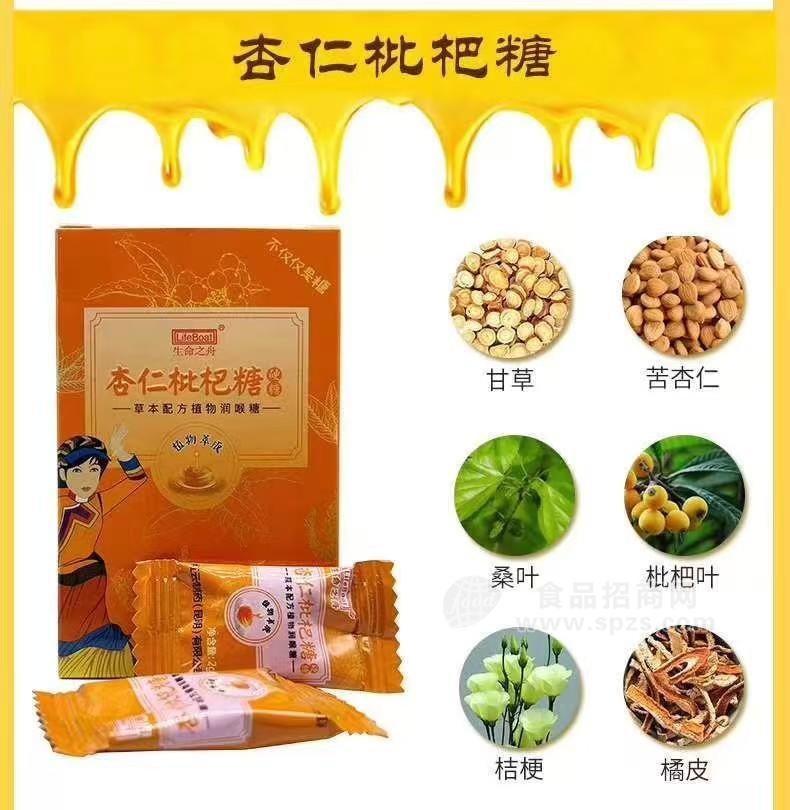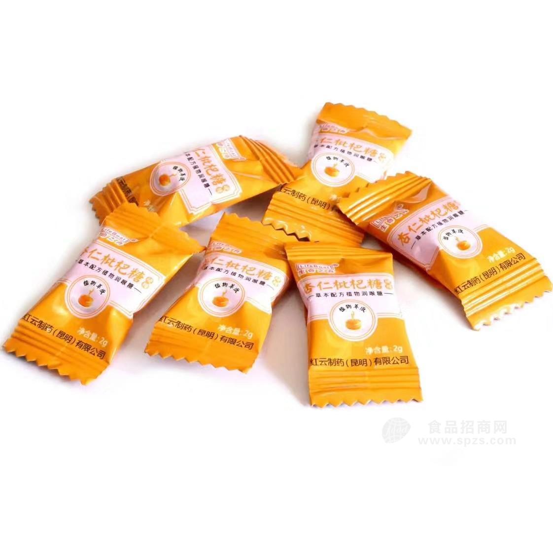 杏仁枇杷糖:所含食药两用的药材有:苦杏仁、枇杷果、橘皮、薄荷、桔梗,甘草,主要针对润肺止咳、化痰平喘