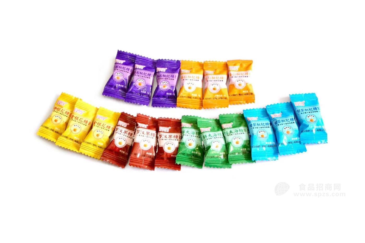 红云制药(昆明)有限公司出品的金银花糖、罗汉果糖、胖大海糖,杏仁枇杷糖、桑菊枇杷糖,甘草枇杷糖等,精选药食两用药材,制作为草本配方植物润喉精华,其中甘草枇杷糖有含糖型有无蔗糖型,每个产品配方不同、效果不同