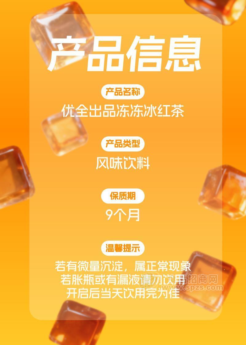 1、优全出品冻冻冰红茶风味饮品450mlx15瓶经销商必须有经营销售能力。