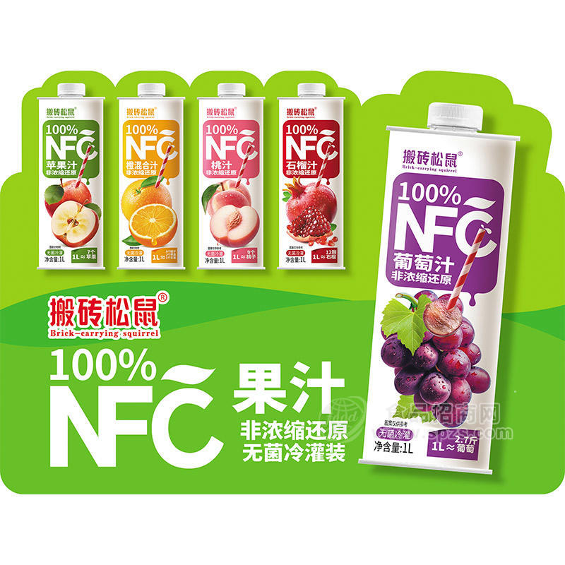 随着市场需求的不断变化和企业自身发展的需求,公司积极转型升级,致力打造高品质配料表干净零添加果汁饮品。首推第一款搬砖松鼠品牌NFC即非浓缩还原果汁,依托直接从种植基地采购水果的优势,给产品奠定品质保障基础!跳过浓缩还原的工业环节,以“鲜果直榨、零添加”的原生形态,实现了真正的100%鲜果榨取,它是常温果汁领域的高端品质标杆NFC无菌冷灌技术。将新鲜采摘的水果清洗干净后直接压榨出果汁,采用瞬间灭菌工艺,再经无菌冷灌技术锁鲜入瓶,全程隔绝污染,最大程度保留了水果的原汁原味和营养成分 ,让消费者品尝到如同在家手动榨汁般的纯正果汁。