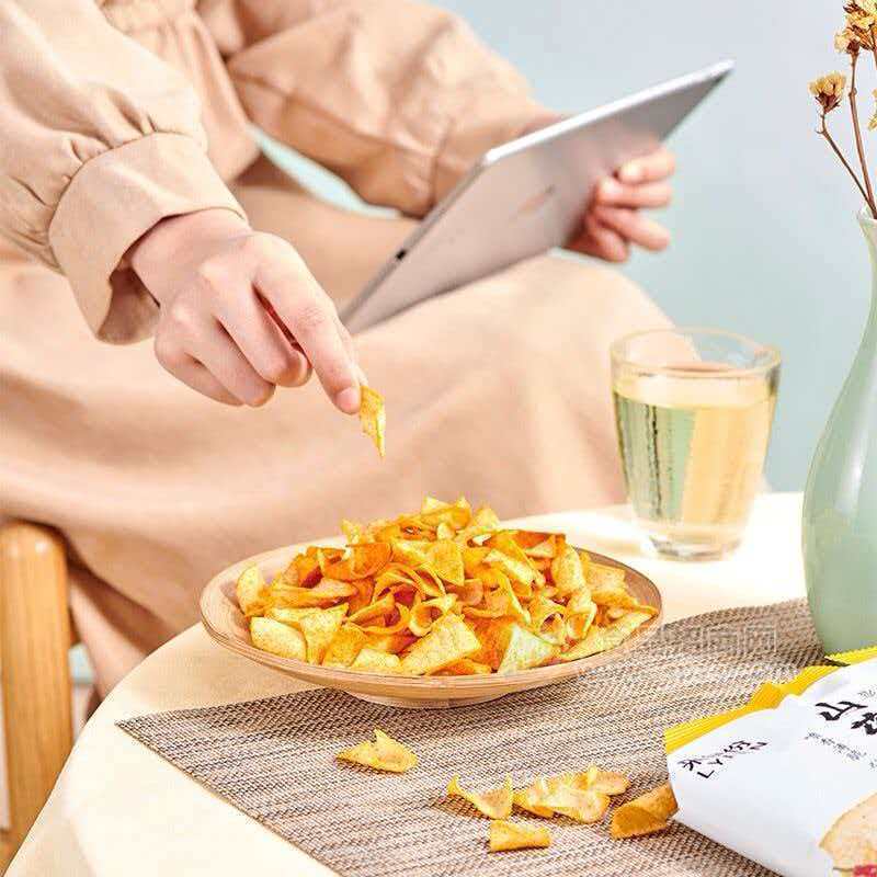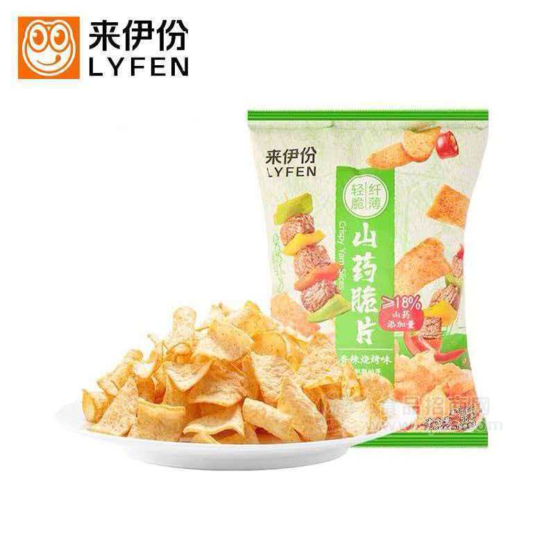 来伊份山药脆片58g袋装香辣烧烤味山药膨化薄脆休闲零食