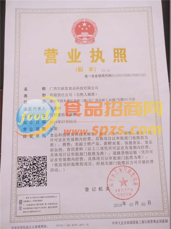 广西生蚨堂食品科技有限公司 诚邀您的加入,共享财富!